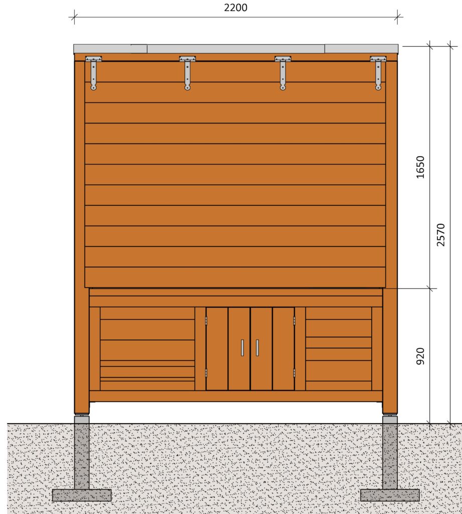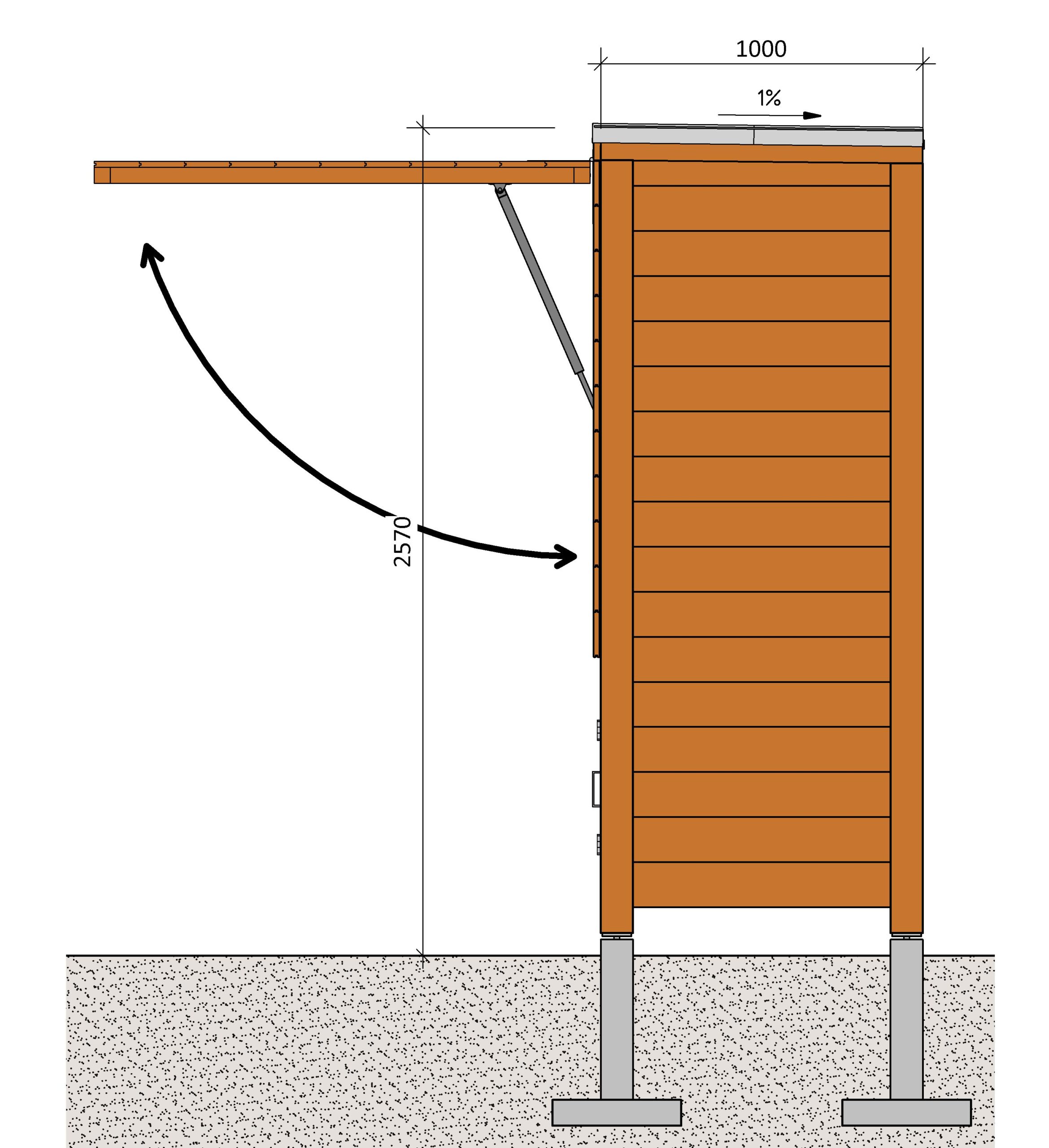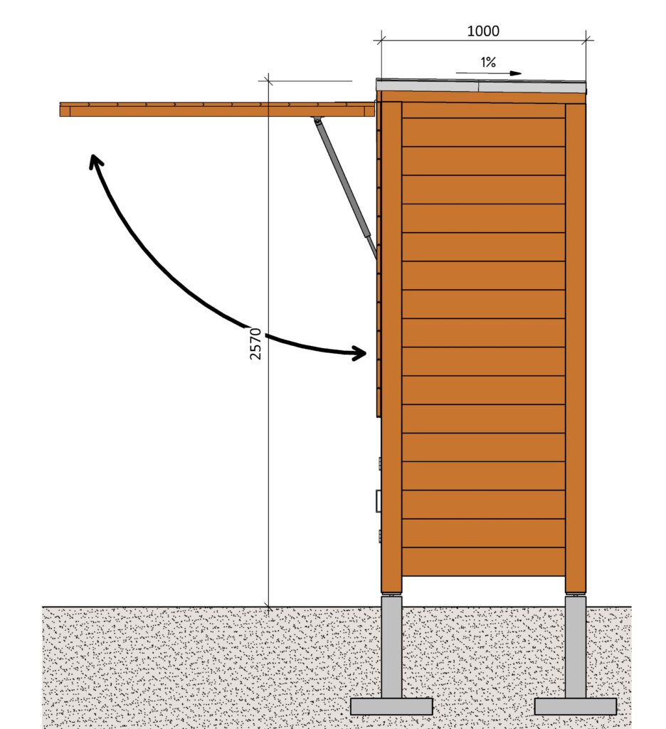 Deze buitenkeuken is voorzien van een afsluitklep die open en dicht kan. In de dichte stand is de keuken beschermd tegen de weersinvloeden en wanneer open, dan dient de klep als een extra afdakje. Door gebruik te maken van gasveren zal het open en dicht doen van de klep zeer gemakkelijk gaan.