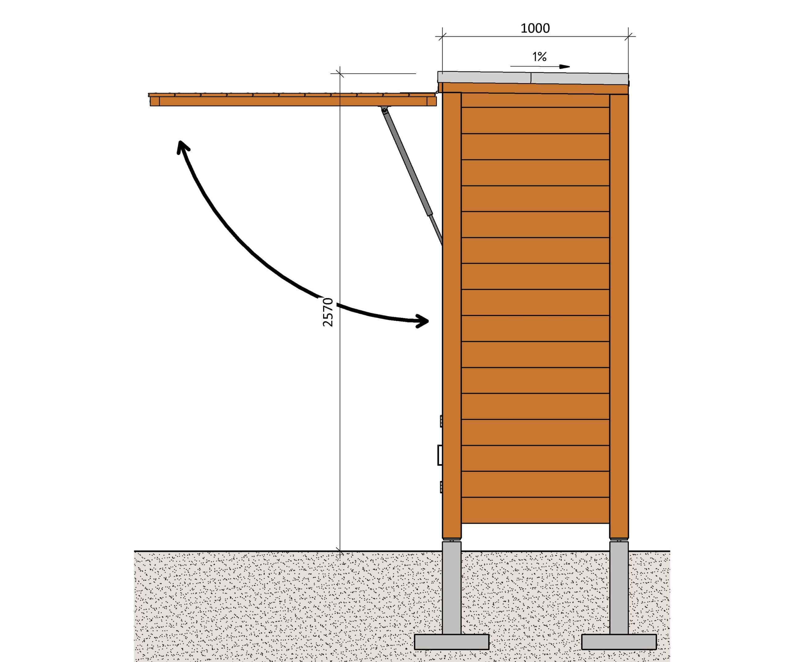 Deze buitenkeuken is voorzien van een afsluitklep die open en dicht kan. In de dichte stand is de keuken beschermd tegen de weersinvloeden en wanneer open, dan dient de klep als een extra afdakje. Door gebruik te maken van gasveren zal het open en dicht doen van de klep zeer gemakkelijk gaan.
