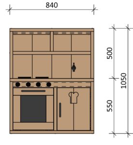 Een leuke steigerhout speelkeuken voor jouw kleintje, die ook nog eens mooi in jouw interieur past. De keuken is voorzien van een oven, opbergkast, kookgedeelte en wasbak die je naar eigen smaak nog kunt uitbreiden met eigen handgreepjes en attributen. Leuke toevoeging is het krijtbord op de klep van de oven.