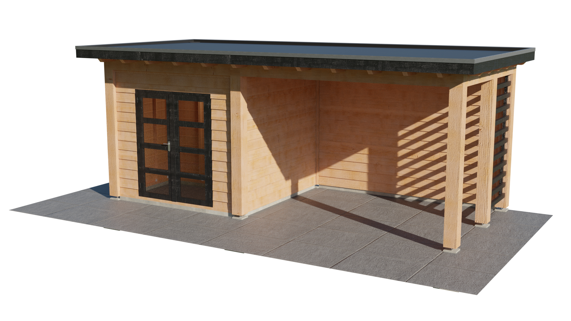 Graag een blokhut met overkapping? Deze blokhut met overkapping heeft een iets landelijkere uitstraling dan het type Strak.