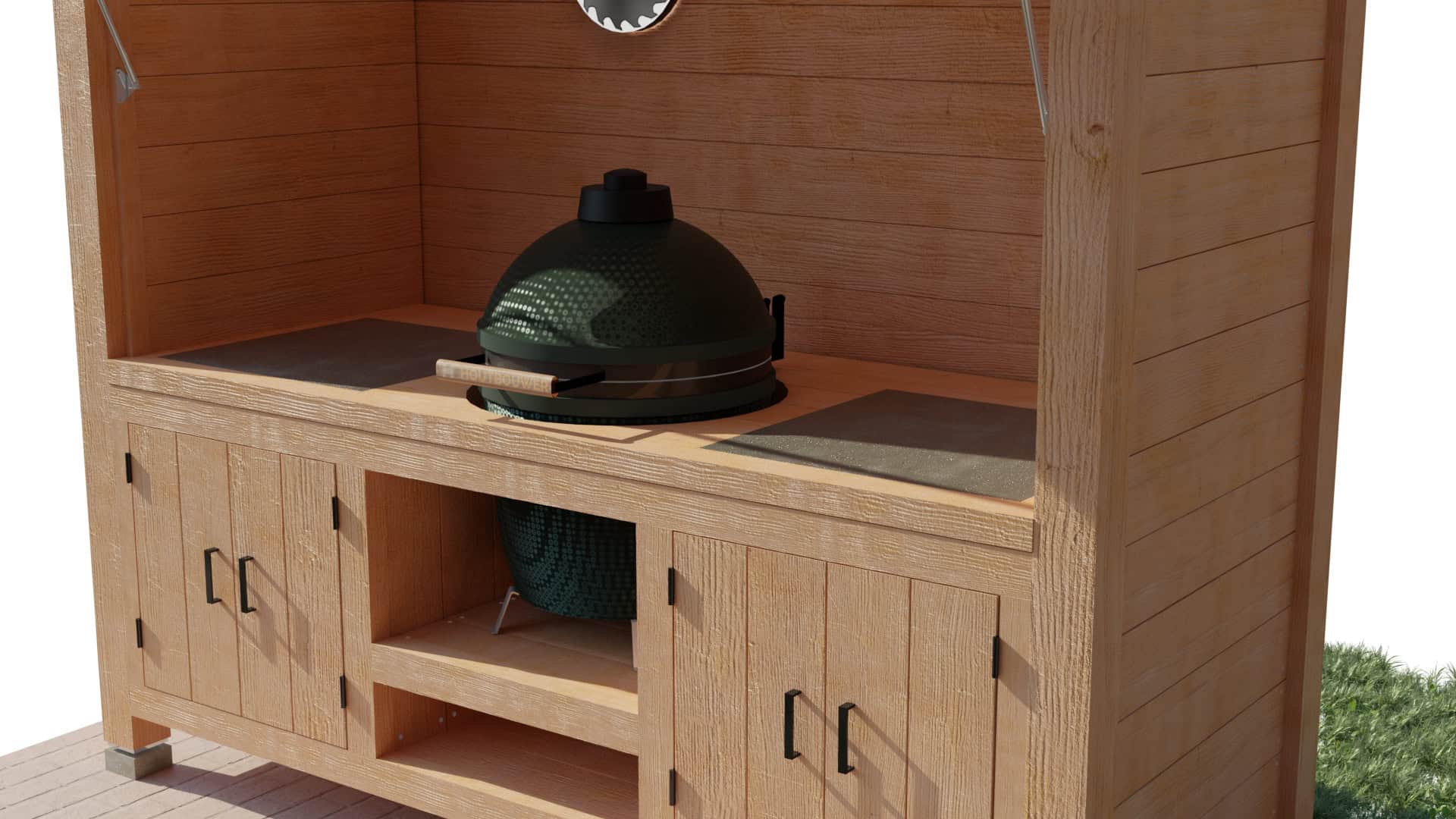 De barbecue keuken is gemaakt van douglashout zodat deze goed buiten kan blijven staan. Met eigen gekozen accessoires (denk aan sloten en grepen) maak je hem helemaal af in je eigen stijl.