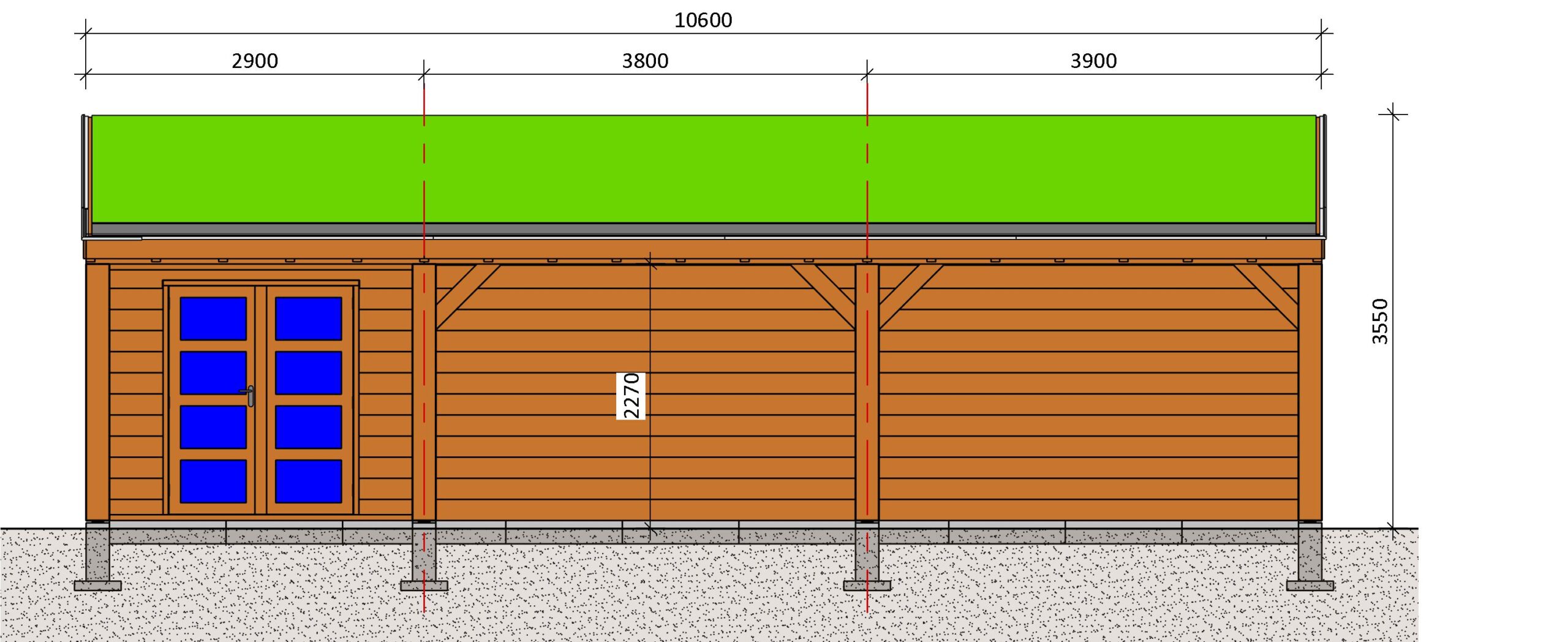 Bouwtekening Blokhut met overkapping Groen Zadeldak Groot